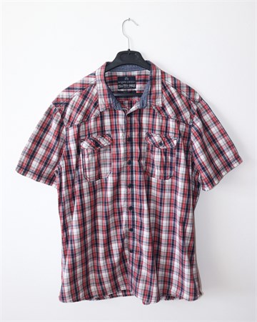 Angelo Litrico (C&A) košulja sa kratkim rukavima, prugasto-karirani uzorak (boje i uzorak vidljivi na slikama). Prednje kopčanje, džepići na prsima. Nije rastezljiva.
