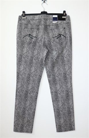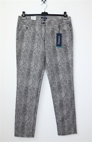 Atelier Gardeur hlače crno-bijele boje sa zmijskim printom. Prednji cif i kopčanje, pasica za remen. Prednji i stražnji klasični džepovi. Rastezljive. Oznaka modela - super slim fit, regular dužina nogavica.