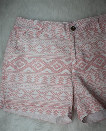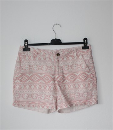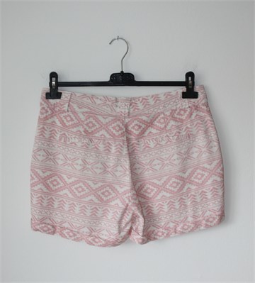 Atmosphere kratke hlače bijele boje sa rozim uzorkom/printom (boje i uzorak vidljivi na slikama). Prednji cif i kopčanje, pasica za remen. Prednji bočni, stražnji ukrasni/lažni džepovi. Nisu rastezljive, lagane i prozračne.