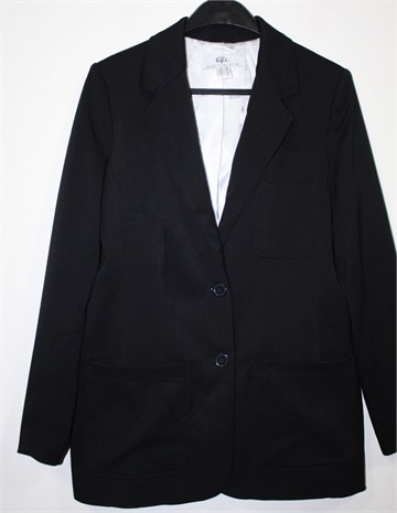 Bonprix Collection sako/blazer crne boje sa podstavom bijele boje (rukavi se mogu nositi i podvinuti). Prednje kopčanje, bočni džepovi i džepić na prsima. Blagi jastučići u ramenima, rastezljiv.