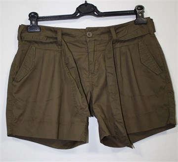 Calzedonia kratke hlače, maslinasto-smeđe boje (kao na slici). Prednji cif i kopčanje, pasica za remen sa pripadajućim remenom (može se skinuti). Prednji i stražnji džepovi, prednje faldice. Tanji i lagan pamuk.
