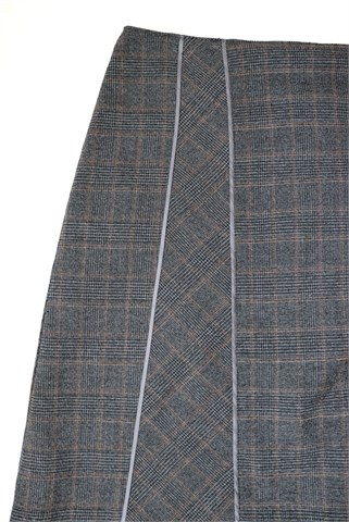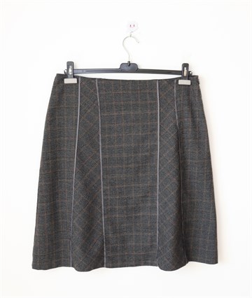 Canda (C&A) suknja sive boje sa uzorkom (vidljivo na slikama). Bočni cif, podstavljena. Blago rastezljiva.