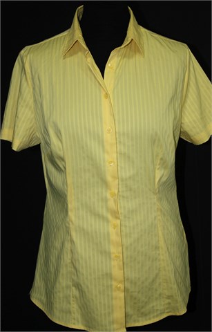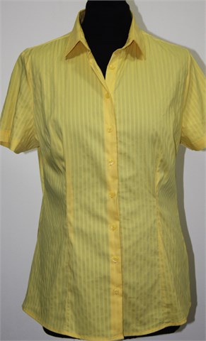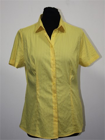 Charles Vogele košulja sa kratkim rukavima, žute boje sa diskretnim prugama. Prednje kopčanje, blago strukirana. Mekan i lagan materijal, rastezljiv.