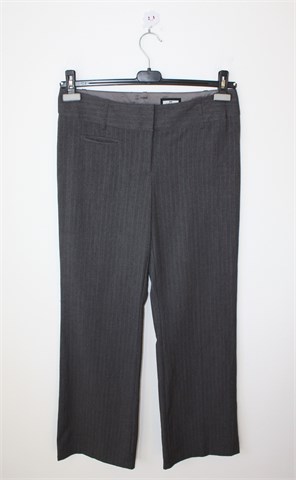 Clockhouse (C&A) hlače sive boje sa prugastim uzorkom (boje uzorka vidljive na slikama). Prednji cif i kopčanje, pasica za remen. Mali prednji džepić, mali stražnji džepovi (djelomično još uvijek zašiveni). Blago rastezljive, tanji štofasti materijal.