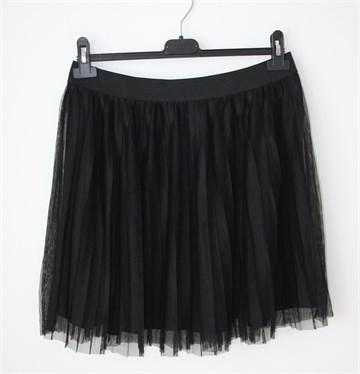 Clockhouse (C&A) plisirana suknja od mrežastog tila, crne boje. Gumica u struku (prilagodljiva širina - vidjeti mjere), podstavljena (podstava je cca 4 cm kraća od suknje).