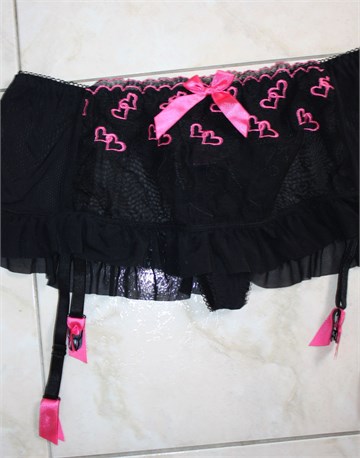 Closer with E-Vie halteri sa ušivenim tanga gaćicama, crne boje sa rozim detaljima. Kopčice za haltere su odvojive.