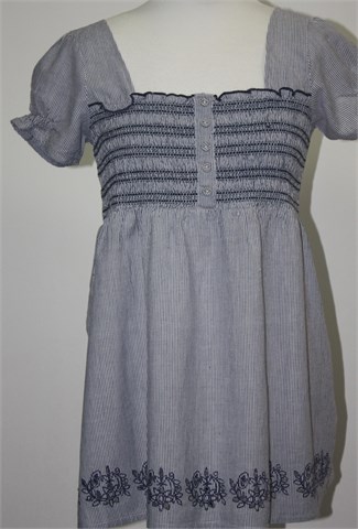 Cubus bluza bijele boje sa plavim prugama i aplikacijama od plavog konca. Prednji gornji dio je rastezljiv jer je prošiven sa gumicama (vidjeti mjere). Prednje ukrasno kopčanje, blage gumice na krajevima rukava. Na dnu aplikacije od konca (blago rupičaste).