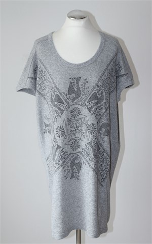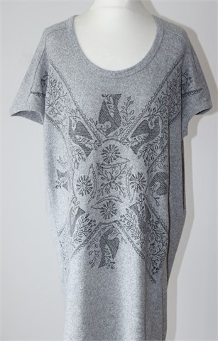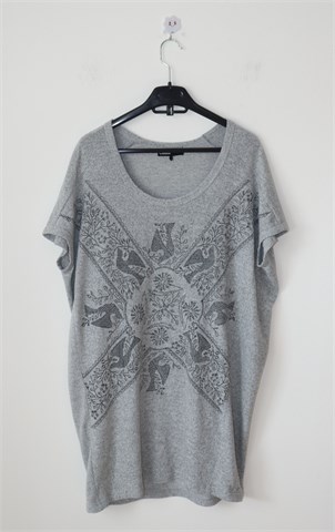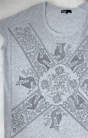 Cubus vesta/tunika sive boje, sa prednje strane aplikacija od crnog konca (vidljivo na slikama). Tanji i mekan materijal, rastezljiv.