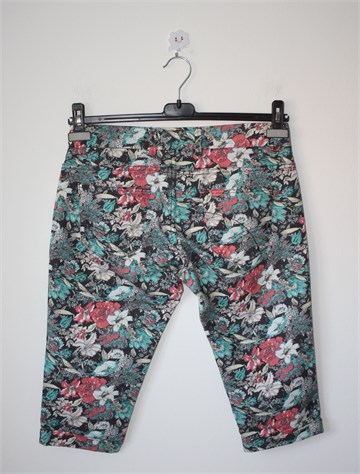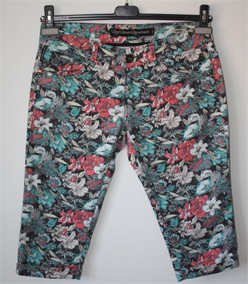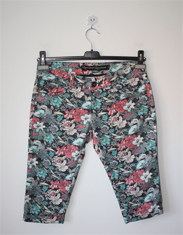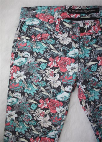 DeptDenimDepartment poluduge hlače od tanjeg trapera, crne boje sa šarenim printom (boje i uzorak printa vidljivi na slikama). Prednji cif i kopčanje, pasica za remen. Prednji i stražnji klasični džepovi. Rastezljive.