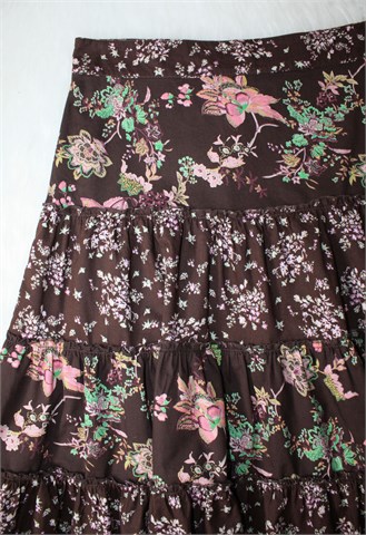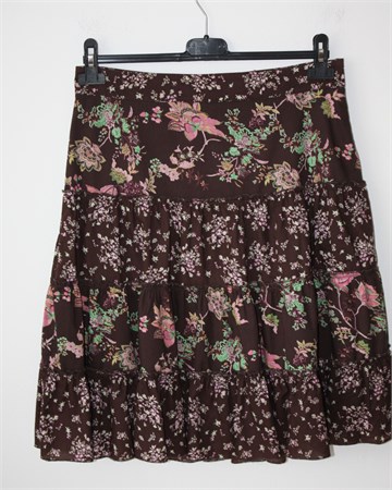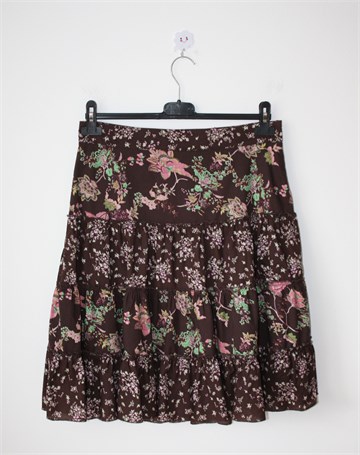 EDC by Esprit suknja tamno smeđe boje sa cvjetnim printom (boje i uzorak printa vidljivi na slikama). Bočni cif, podstavljena pamučnom podstavom. Tanja i lagana.
