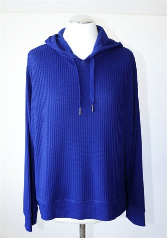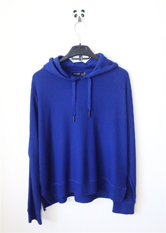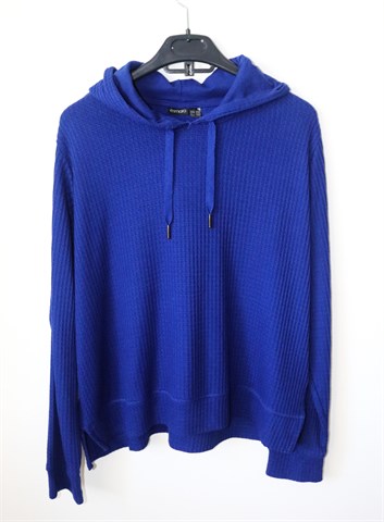 Esmara majica kraljevsko plave boje, uzorak u tkanju. Kapuljača i vezica za stezanje kapuljače, mali bočni prorezi. Mekana i vrlo rastezljiva, tanji i ugodan materijal. Oversized model (vidjeti mjere).