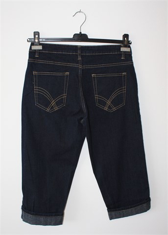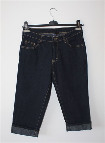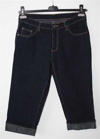 Esmara poluduge traper hlače, tamno plave boje. Prednji cif i kopčanje, pasica za remen. Prednji i stražnji klasični džepovi. Rastezljive, dublji model (vidjeti mjere).
