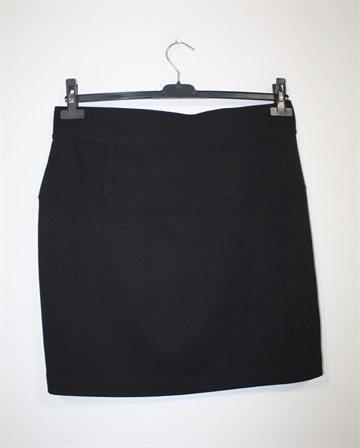 Esmara suknja crne boje, guma u struku pa je širina prilagodljiva (vidjeti mjere). Odličan materijal koji se lijepo prilagodi tijelu, nosiva cijelu godinu. Rastezljiva.
