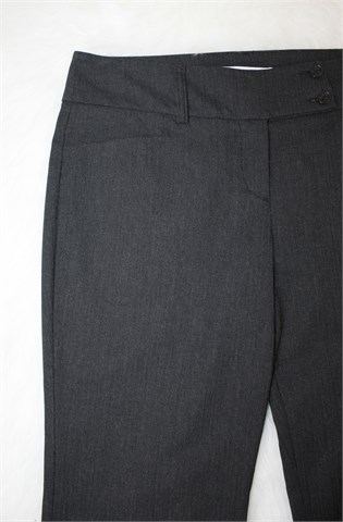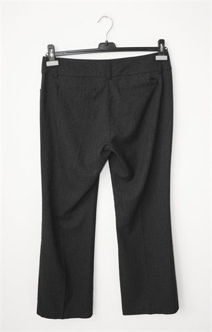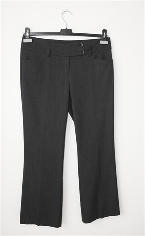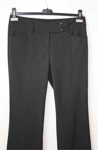 Esprit hlače klasičnog kroja, crno-sive boje (sitan uzorak na materijalu). Prednji cif i kopčanje, pasica za remen. Prednji bočni, stražnji ukrasni/lažni džepovi. Tanje i lagane, vrlo blago rastezljive.
