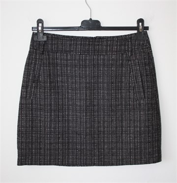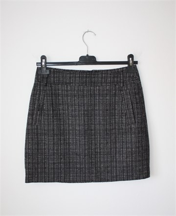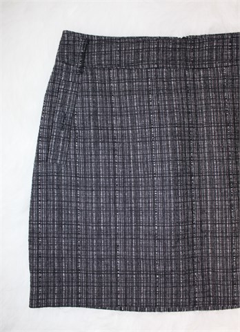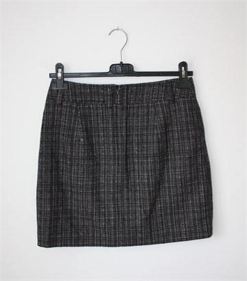 Esprit suknja crno-bijele boje sa uzorkom (vidljivo na slikama). Stražnji cif, prednji bočni džepovi sa gumbom. Podstavljena, vrlo blago rastezljiva.