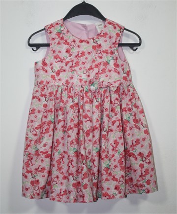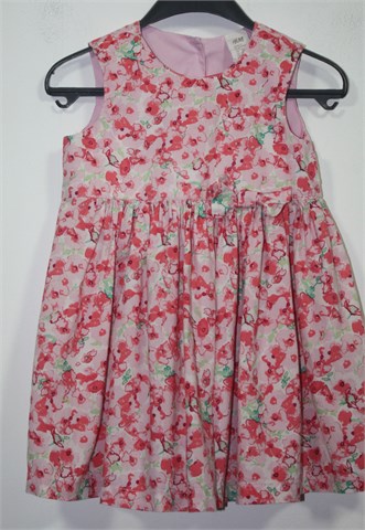 H&M haljina bez rukava, bijele boje sa cvjetnim printom (boje i print kao na slikama). Sa stražnje strane kopčanje sa gumbićima, prednja ukrasna mašnica. Gornji dio je podstavljen. Čvrst ali tanji pamuk.