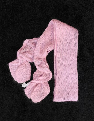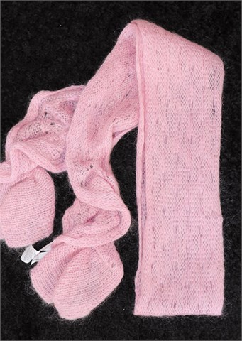 H&M šal od tanjeg i rastezljivog pletiva, roze boje sa šljokavim rozim nitima. Mekan i mucast.