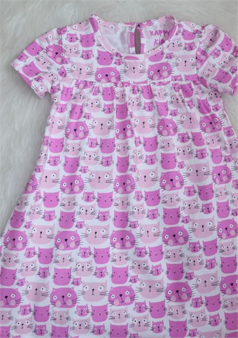 Happy Kids by Tchibo haljina bijele boje sa rozim printom maca (boje i uzorak printa vidljivi na slikama). Mekana i rastezljiva.