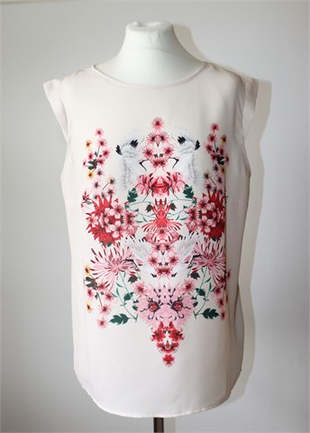 KappAhl bluza svijetlo nude boje sa prednjim printom (boje i uzorak printa vidljivi na slikama). Stražnja strana rastezljiva,. Tanka i lagana.