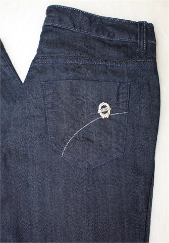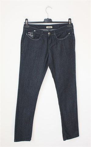 Killah traper hlače, tamno plave boje. Prednji cif i kopčanje, pasica za remen. Prednji i stražnji džepovi, blago rastezljive. Mjestimično prošivene (i ukrašene) srebrnim koncem (Killah metalna pločica na stražnjem džepu).