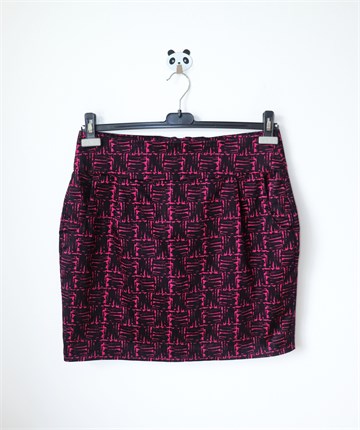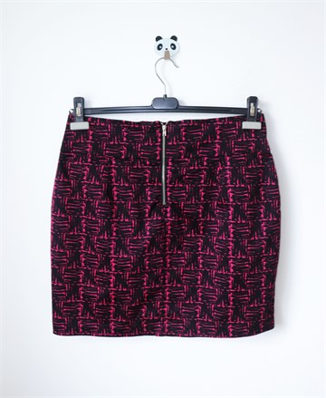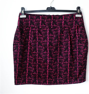 Lindex suknja crne boje sa ciklama rozim printom (vidljivo na slikama). Prednji bočni džepovi, stražnji cif i gumbić. Podstavljena.