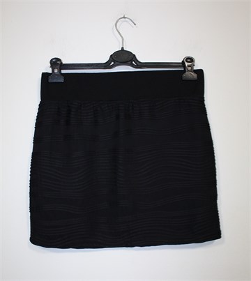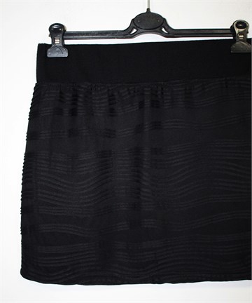 Mana kraća suknja crne boje, sa prednje strane valoviti prošivi na materijalu (kao na slici). Šira guma u struku, cijela rastezljiva. Podstavljena sa prednje strane.
