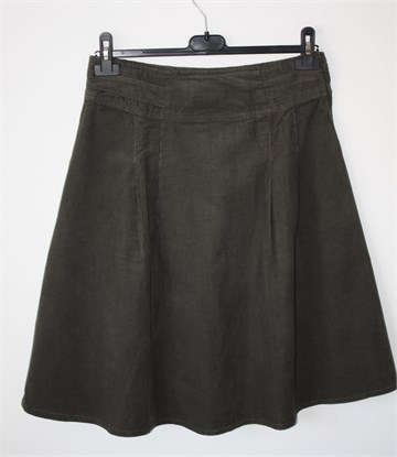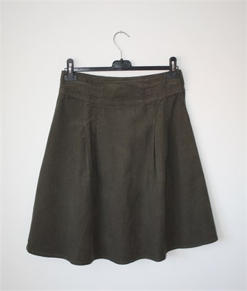 Mana suknja od samta maslinasto-sive boje. Bočni cif, šira u tijelu (ima falde ispod pasice).