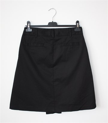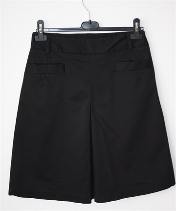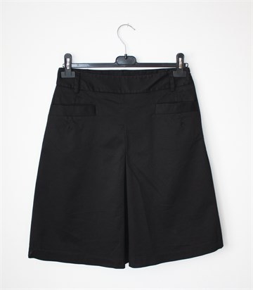 Mango Suit suknja crne boje. Bočni cif i kopčica (malo se odšila), prednja falda (umjesto proreza). Prednji džepovi, stražnji samo ukrasni. Blago rastezljiva.
