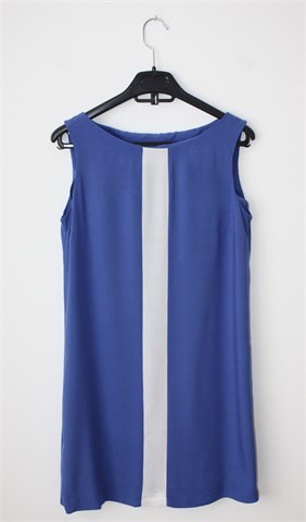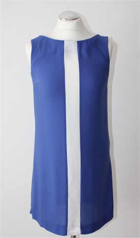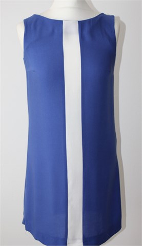 Mango haljina/tunika bez rukava, plave boje. Sa prednje strane crta bijele boje. Tanka i lagana, nije rastezljiva.