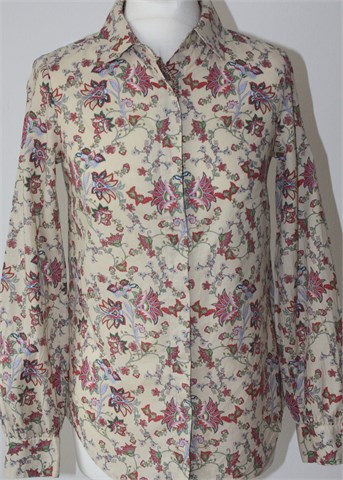 Mango Collection košulja sa dugim rukavima, nude-bež boje sa printom (boje i uzorak printa vidljivi na slikama). Prednje skriveno kopčanje, nije rastezljiva.