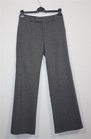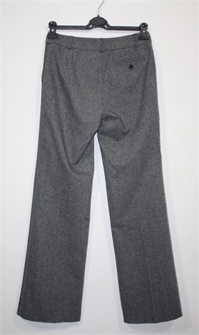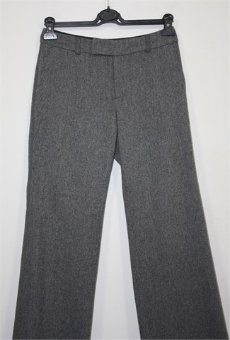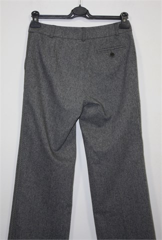Mexx zimske hlače prošarano crno-bijele boje. Prednji cif i kopčanje, pasica za remen. Prednji bočni i jedan stražnji skriveni džepić sa gumbom. Bočno na nogavicama su ušivene ukrasne trake (diskretne), hlače su podstavljene do cca pola dužine. Materijal je mekani štof, srednje debljine. Nisu rastezljive.