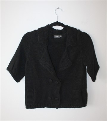 Mexx kraći kardigan/vesta sa kratkim rukavima (prednje kopčanje), bočni džepići. Deblje i mucasto pletivo, rastezljivo.