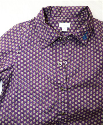 Mexx košulja sa dugim rukavima, ljubičaste boje sa plavo-zelenim cvjetnim printom. Prednje kopčanje sa drukerima, rukavići su pri dnu stegnuti gumicama.