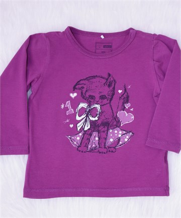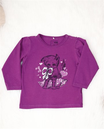 Name It majica sa dugim rukavima, ljubičaste boje sa prednjim printom. Mekana i rastezljiva, drukeri na ramenu.