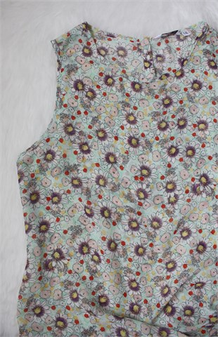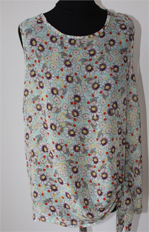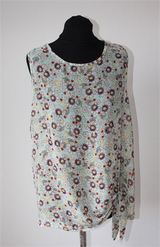 New Look bluza bez rukava, šareni cvjetni print (boje i uzorak printa vidljivi na slikama). Prednji ukrasni nabor, sa stražnje strane kopčanje sa tri gumbića. Tanja i lagana, providna.