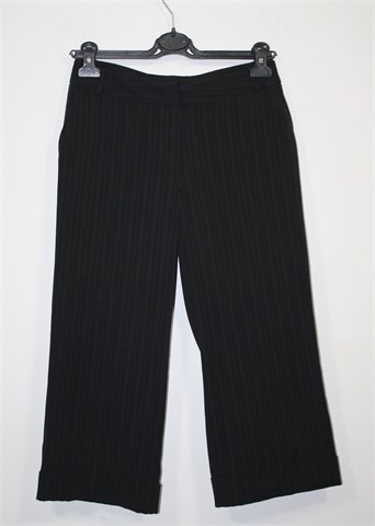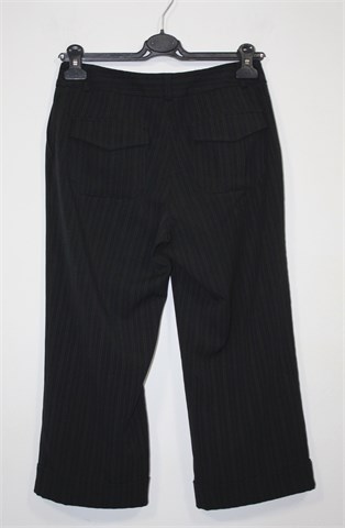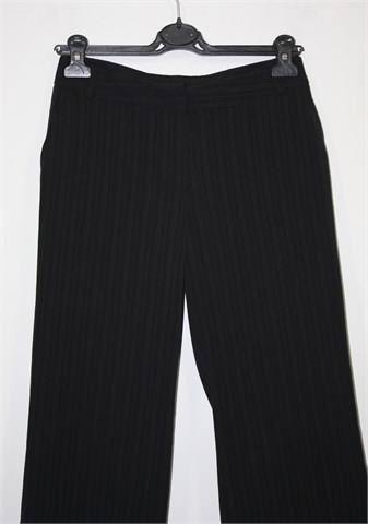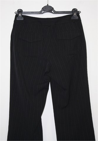 New Look poluduge hlače crne boje sa diskretnim prugama, materijal je kao tanji štof. Prednji cif i kopčanje, pasica za remen. Prednji bočni, stražnji džepovi sa preklopom. Blago rastezljive.