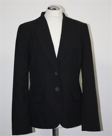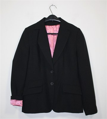 New Look sako/blazer crne boje, podstava je roze boje (rukavi se mogu nositi podvinuti kao na slici pa je podstava rukava vidljiva). Prednje kopčanje, bočni ukrasni džepovi. Jastučići u ramenima, podstavljen. Odličan, klasični model.