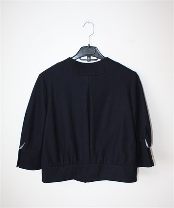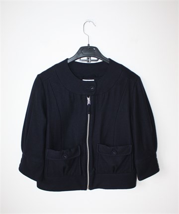 Next kraći kaput sa poludugim rukavima, tamno plave boje. Prednje kopčanje sa cifom i gumbićem uz vrat, prednji bočni džepovi. Po tri gumba na kraju svakog rukava, podstavljena (podstava je sive boje sa bijelim točkicama).