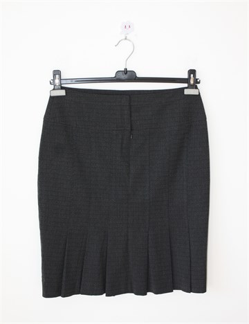 Next suknja sive boje sa uzorkom na materijalu (vidljivo na slikama). ukrasni gumbići sa prednje strane, sa stražnje strane u donjem dijelu falde. Stražnji cif i gumbić, podstavljena. Blago rastezljiva.