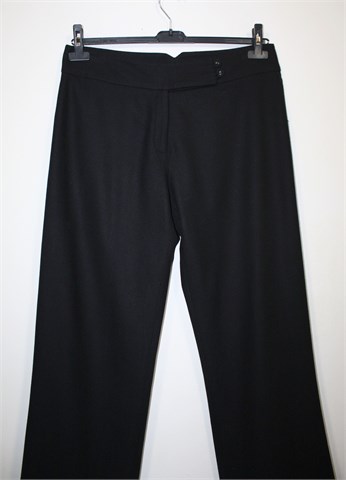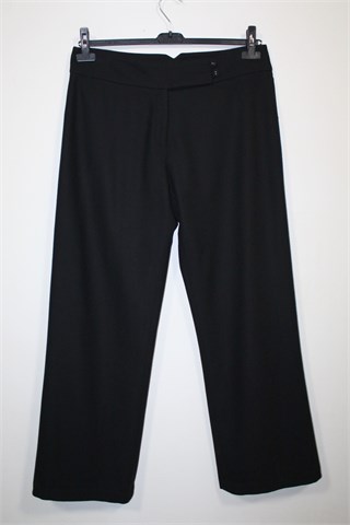 Zimske Next hlače crne boje, odlična kombinacija vune i viskoze (mucasti i topli materijal, srednje debljine). Prednji cif i kopčanje, sa stražnje strane pasice ukrasna kopčica. Uz rub nogavica ušivene su ukrasne trake (vrlo diskretne), hlače nemaju džepove.