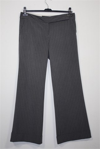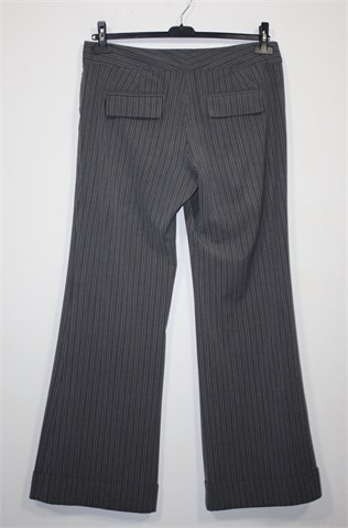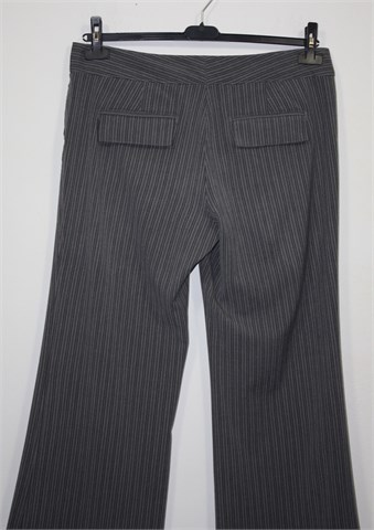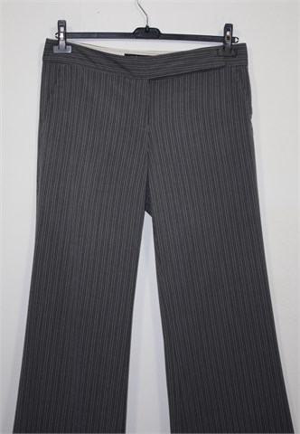 Old navy hlače od tanjeg i mekanog štofa, svijetlo sive boje sa tamno sivim prugama. Prednji cif i kopčanje, prednji bočni i stražnji džepovi sa preklopom. Vrlo blago rastezljive.