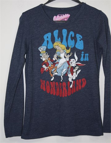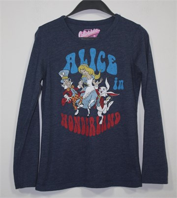 Old Navy majica sa dugim rukavima, prošarano plave boje sa prednjim printom (Alisa u zemlji čudesa). Lagan i blago rastezljiv materijal.
