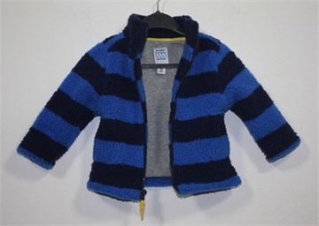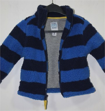 Old Navy prugasta jaknica u kombinaciji tamnije i svjetlije plave boje. Prednje kopčanje na cif, bočni džepovi. Vanjski dio je deblji mucasti materijal, podstava je pamučna.