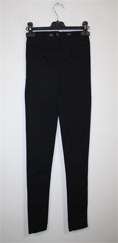 Pieces hlače-tajice crne boje, skinny model. Visoki struk (dublji model), stražnji cif i gumbić. Stražnji džepovi. Unutar pasice regulacija širine struka (bočne gumice i gumbić). Blago rastezljive. Model za vitke i visoke djevojčice (vidjeti mjere).