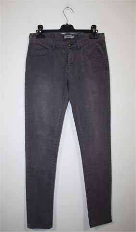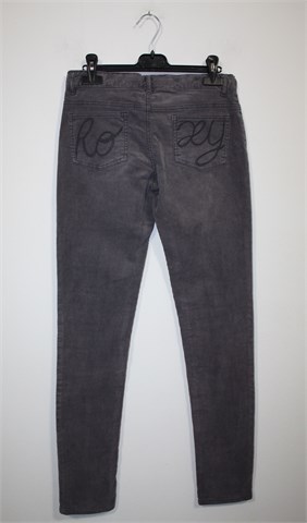 Roxy hlače od samta sive boje, skinny model. Prednji cif i kopčanje, pasica za remen. Prednji i stražnji džepovi (stražnji s aplikacijom Roxy - vidljivo na slikama). Regulacija širine struka unutar pasice (bočne gumice sa gumbićem). Mekane i rastezljive.