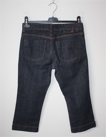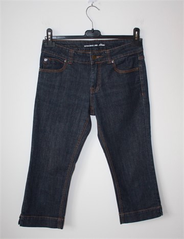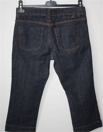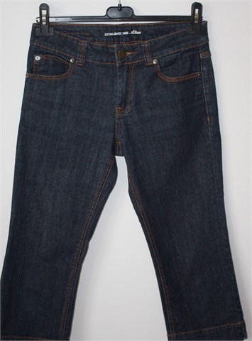S. Oliver poluduge traper hlače, tamno plave boje. Prednji cif i kopčanje, pasica za remen. Prednji i stražnji džepovi, mali rasporak sa vanjske strane nogavica. Blago rastezljive.