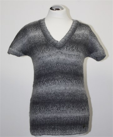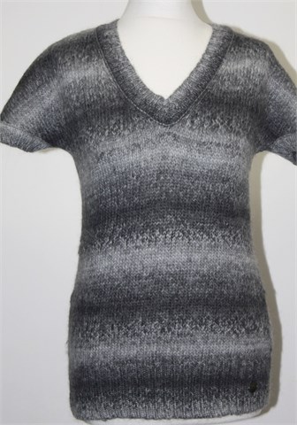 S. Oliver vesta sa kratkim rukavima, prošarano sive boje. Deblje, mucasto i rastezljivo pletivo.