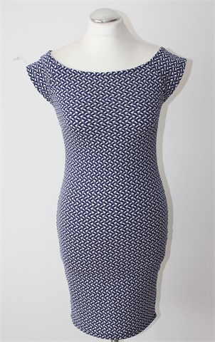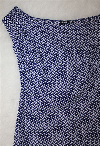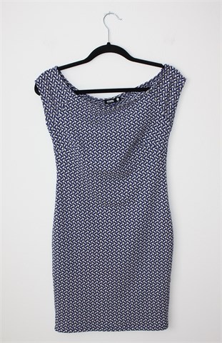 Sinsay haljina sa malim rukavima, kombinacija uzorka je plavo-bijelo-crna (vidljivo na slikama). Rastezljiva.