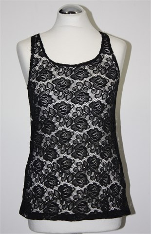 Terranova majica bez rukava, crne boje sa uzorkom čipke (vidljivo na slikama). Providna.
