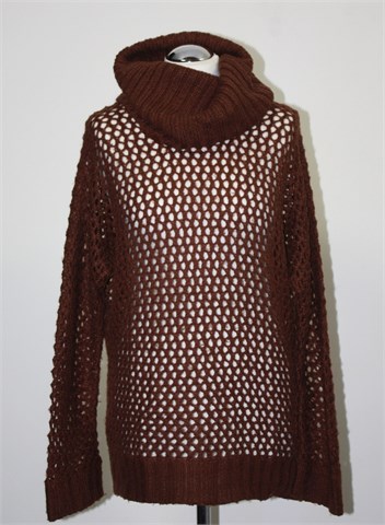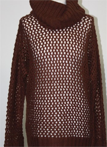 Terranova rupičasta vesta/dolčevita smeđe boje. Mekano, blago mucasto i rastezljivo pletivo.